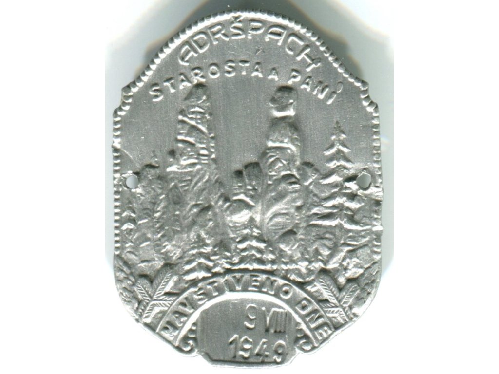 ADRŠPACH. Starosta paní. Navštíveno dne: 9. 8.1949. Štítek na hůl.