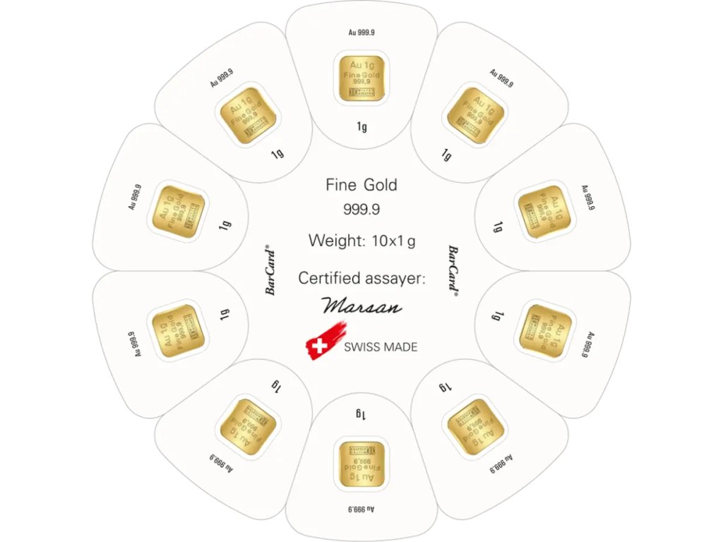 Zlatý investiční slitek Argor Heraeus - 10 x 1 gram, GOLDSEED