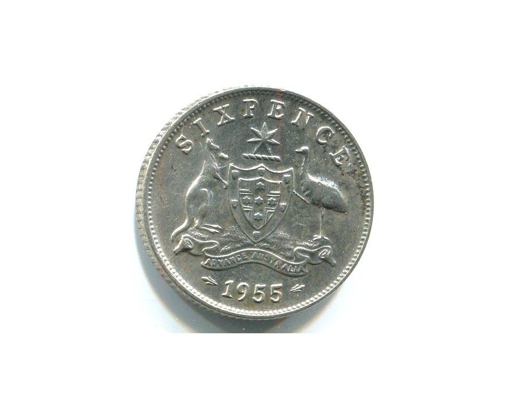 AUSTRÁLIE. 6 pence 1955. Ag.