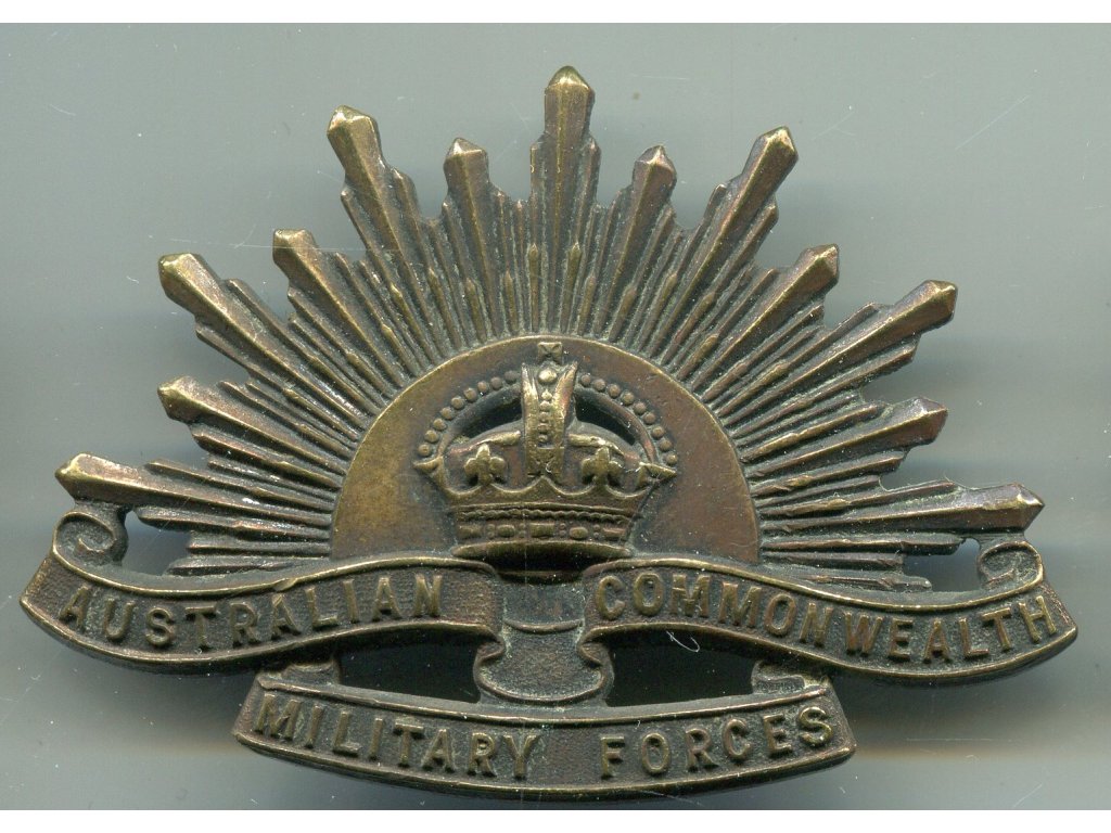 AUSTRÁLIE. Australian Commonwealth Military Forces / Čepicový odznak australských sil Commonwealthu. 1. svět. válka.