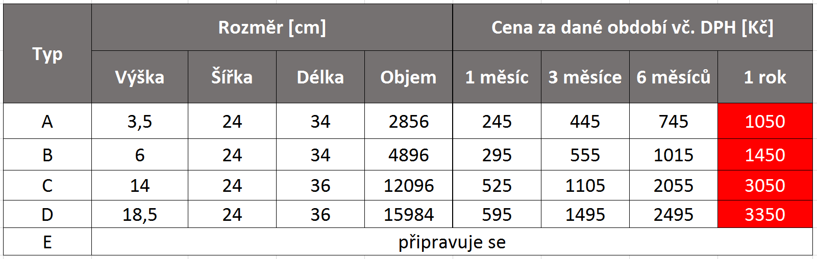 Níže naleznete kompletní ceník pronájmu bezpečnostních schránek. V případě zájmu o pronájem nás kontaktujte elektronicky na info@numismatika-ostrava nebo pomocí formuláře