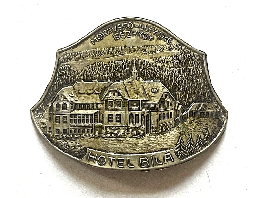 BÍLÁ. Hotel. Moravsko-slezské Bezkydy. Štítek na hůl.