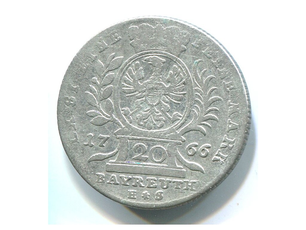BRANDENBURG-Bayreuth. Friedrich V. Christian (1763-1769). 20 Kreuzer 1766. Ag.