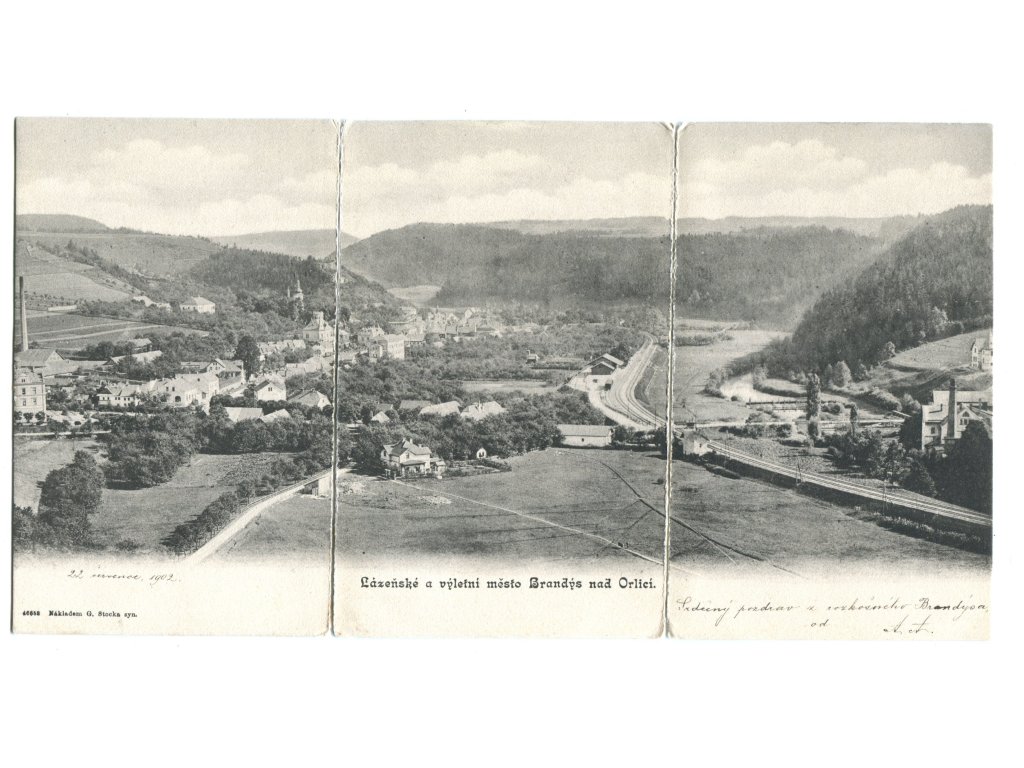 BRANDÝS NAD ORLICÍ. LÁZEŇSKÉ A VÝLETNÍ MĚSTO. 1902. Trojpohlednice.