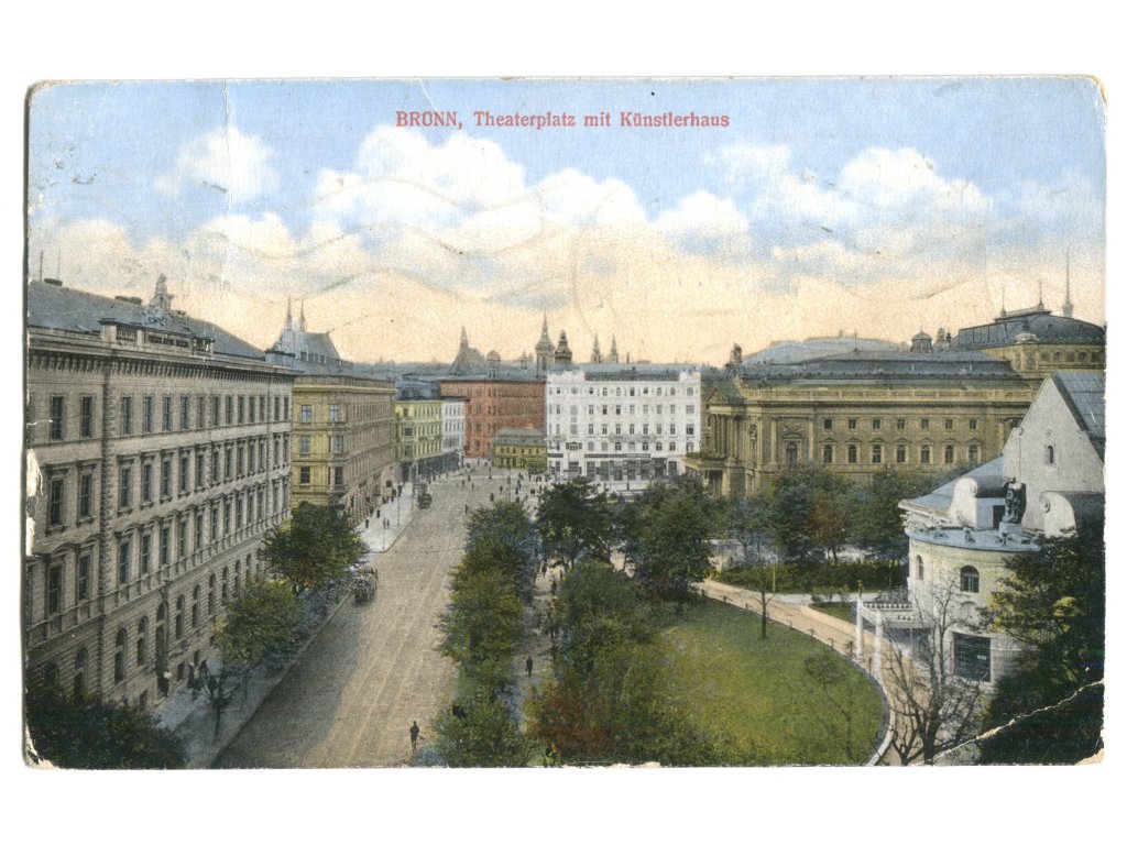 BRNO. DIVADELNÍ NÁMĚSTÍ A DŮM UMĚNÍ / Brünn. Theaterplatz mit Künstlerhaus.