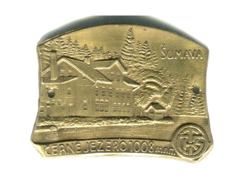 ČERNÉ JEZERO. Šumava. KČST. Štítek na hůl.