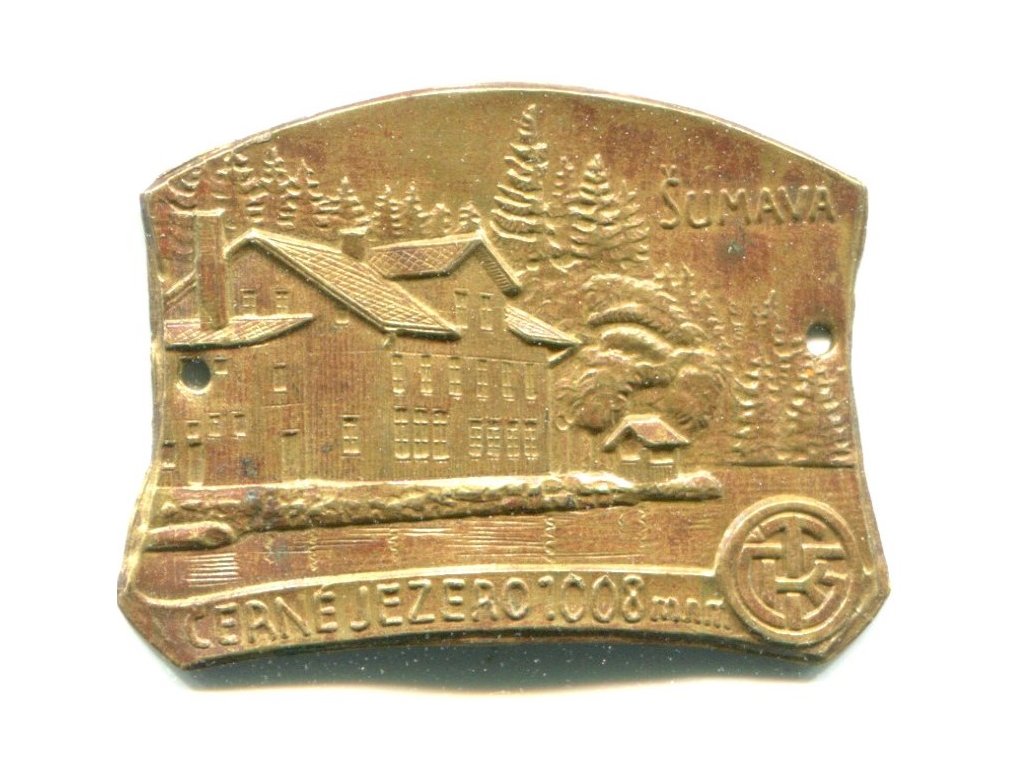 ČERNÉ JEZERO. Šumava. KČST. Štítek na hůl.