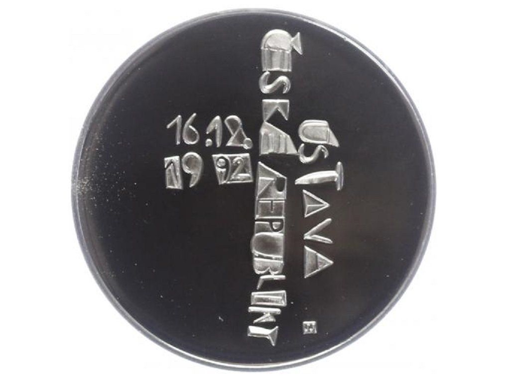 Česká národní banka vydává dnem 15.prosince 1993 při příležitosti prvního výročí schválení ústavy České republiky první pamětní stříbrnou 200 Kč minci. Ta se vydává ve dvojím provedení ražby. V běžném a ve zvláštním tzv. proof pro sběratelské účely. Ražba proof se od běžné ražby liší tím, že u běžné ražby je mincovní pole i reliéf leštěno stejně, u mincí proof je mincovní pole vyleštěno do vysokého lesku a reliéf je matován.