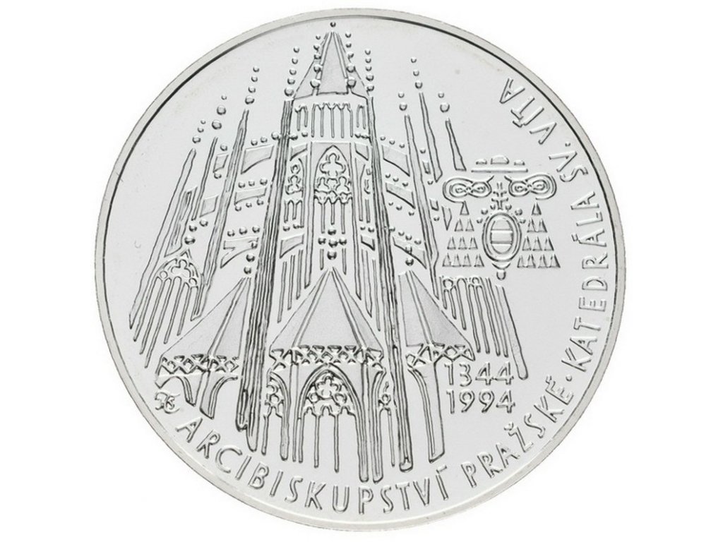 Při příležitosti 650. výročí založení pražského arcibiskupství a položení základního kamene ke Katedrále sv. Víta vydává Česká národní banka do oběhu dnem 20.dubna 1994 pamětní stříbrnou 200 Kč minci. Při zachování stejného obrazu se mince vydává ve dvojím provedení ražby. V běžném a ve zvláštním špičkovém provedení tzv. proof pro náročné sběratele numismatiky. Mince kvality proof se od běžné mince liší v povrchové úpravě. Zatímco u běžné kvality je mincovní pole i reliéf leštěn stejně, u mincí proof je mincovní pole vyleštěno do vysokého lesku a reliéf je matován.