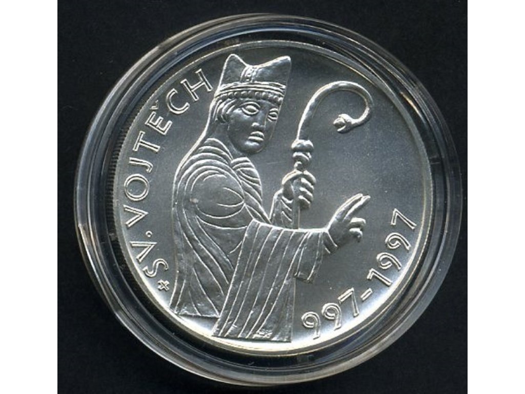 Při příležitosti tisíciletého výročí úmrtí sv. Vojtěcha vydává Česká národní banka do oběhu dnem 16.dubna 1997 stříbrnou pamětní 200 Kč minci. Při zachování stejného obrazu se mince vydává ve dvojím provedení ražby. V klasickém běžném a ve zvláštním špičkovém provedení tzv. proof. Mince proof kvality se od běžné mince liší v povrchové úpravě. Zatímco u běžné kvality je mincovní pole i reliéf leštěn stejně, u mincí proof je mincovní pole vyleštěno do vysokého lesku a reliéf je matován. Rozdílná je i hrana mincí, u běžné kvality je vroubkovaná, u kvality proof je hladká.