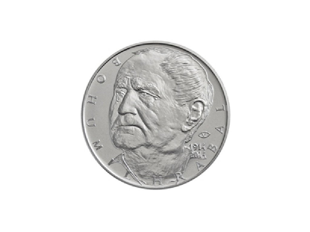 Dnem 26. března 2014 vydává Česká národní banka pamětní stříbrnou dvousetkorunu ke 100. výročí narození spisovatele Bohumila Hrabala. Dvousetkoruna je ražena ze slitiny obsahující 925 dílů stříbra a 75 dílů mědi a vydává se ve dvojím provedení, v běžném a špičkovém (proof), které se liší povrchovou úpravou a provedením hrany. U mincí špičkové kvality je pole mince vysoce leštěné a reliéf je matován, hrana je hladká s vlysem „ČESKÁ NÁRODNÍ BANKA * Ag 0.925 * 13 g *“. Mince běžné kvality mají hranu vroubkovanou. Průměr mince je 31 mm, hmotnost 13 g a síla je 2,35 mm. Stejně jako u každé ražby mincí jsou i u těchto mincí povoleny odchylky v průměru 0,1 mm a v síle 0,15 mm. V hmotnosti je povolena odchylka nahoru 0,26 g a v obsahu stříbra odchylka nahoru 1%.