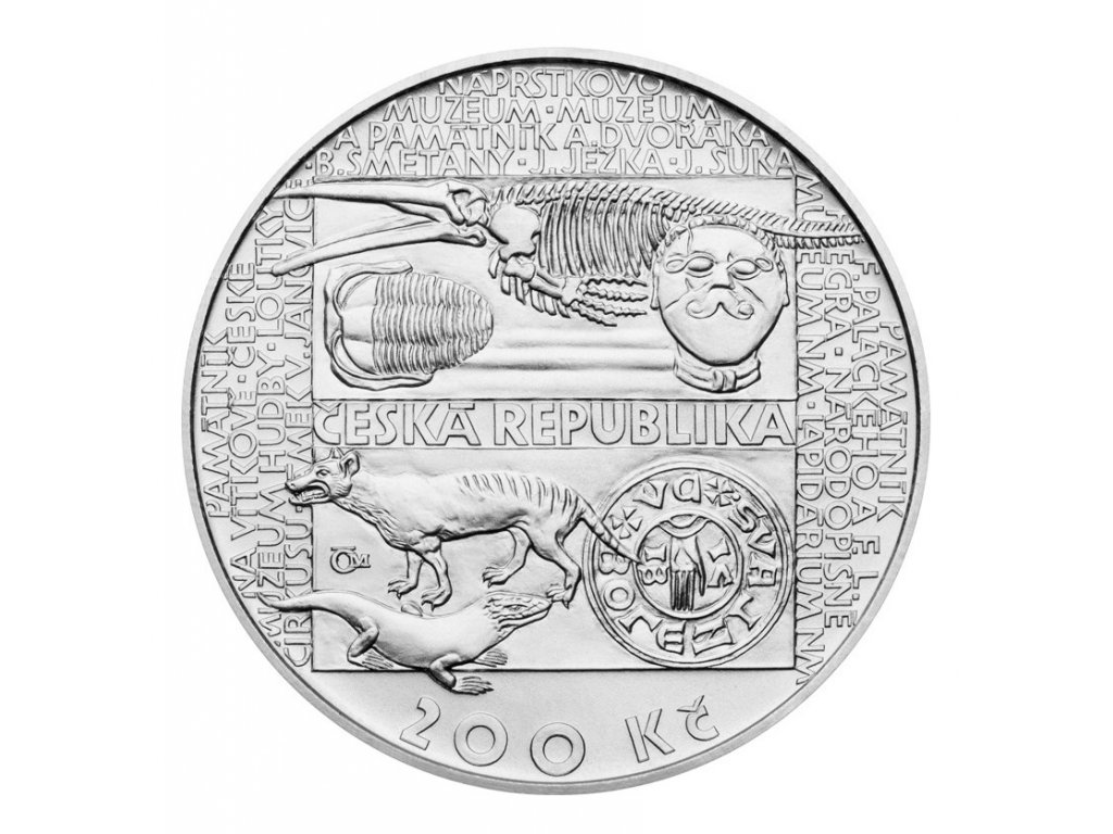 Dne 5. září 2018 vydala Česká národní banka pamětní stříbrnou dvousetkorunu k 200. výročí založení Národního muzea. Dvousetkoruna je ražena ze slitiny obsahující 925 dílů stříbra a 75 dílů mědi a vydává se ve dvojím provedení, v běžném a špičkovém (proof), které se liší povrchovou úpravou a provedením hrany. U mincí špičkové kvality je pole mince vysoce leštěné a reliéf je matován, hrana je hladká s vlysem „ČESKÁ NÁRODNÍ BANKA * Ag 0.925 * 13 g *“. Mince běžné kvality mají hranu vroubkovanou. Průměr mince je 31 mm, hmotnost 13 g a síla je 2,3 mm. Stejně jako u každé ražby mincí jsou i u těchto mincí povoleny odchylky v průměru 0,1 mm a v síle 0,15 mm. V hmotnosti je povolena odchylka nahoru 0,26 g a v obsahu stříbra odchylka nahoru 1 %.