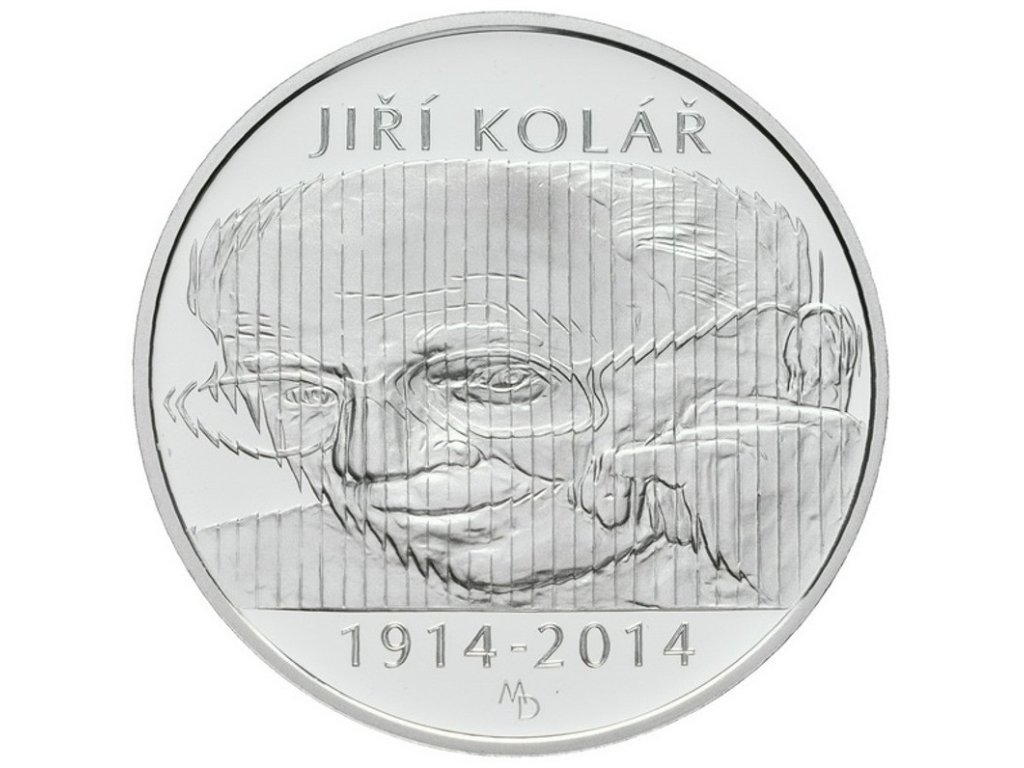 Dnem 24. září 2014 vydává Česká národní banka pamětní stříbrnou pětisetkorunu ke 100. výročí narození výtvarníka a básníka Jiřího Koláře. Pětisetkoruna je ražena ze slitiny obsahující 925 dílů stříbra a 75 dílů mědi a vydává se ve dvojím provedení, v běžném a špičkovém (proof), které se liší povrchovou úpravou a provedením hrany. U mincí špičkové kvality je pole mince vysoce leštěné a reliéf je matován, hrana je hladká s vlysem „ČESKÁ NÁRODNÍ BANKA * Ag 0.925 * 25 g *“. Mince běžné kvality mají hranu vroubkovanou. Průměr mince je 40 mm, hmotnost 25 g a síla je 2,85 mm. Stejně jako u každé ražby mincí jsou i u těchto mincí povoleny odchylky v průměru 0,1 mm a v síle 0,15 mm. V hmotnosti je povolena odchylka nahoru 0,26 g a v obsahu stříbra odchylka nahoru 1 %.