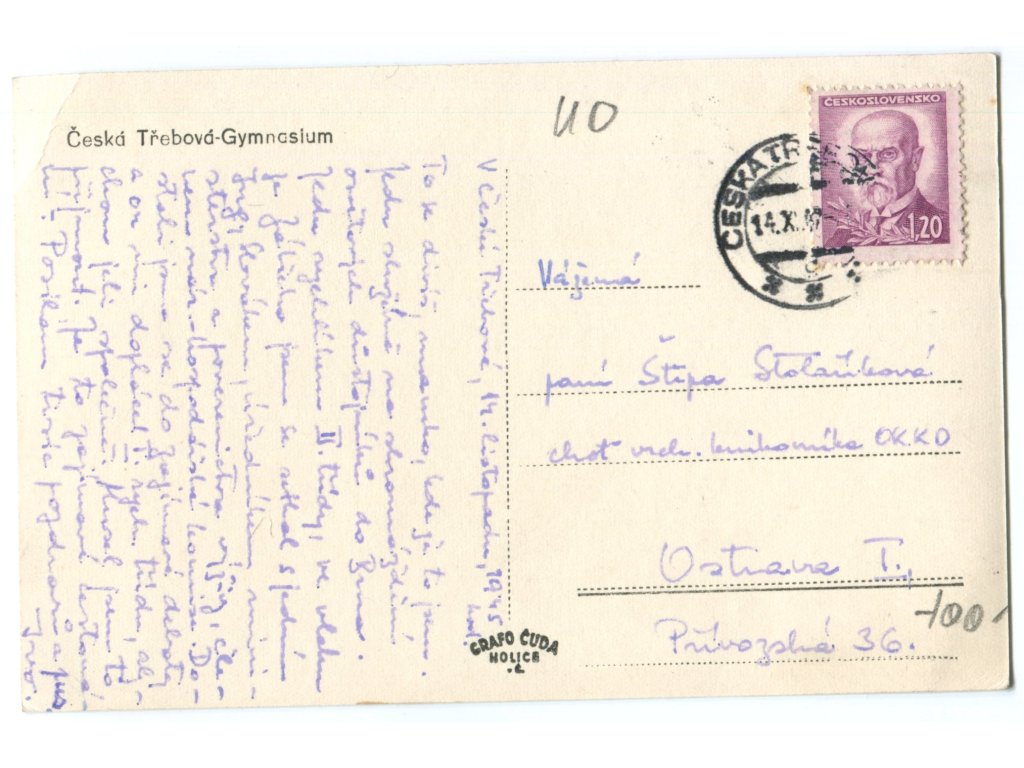 ČESKÁ TŘEBOVÁ. Gymnasium. 1945.