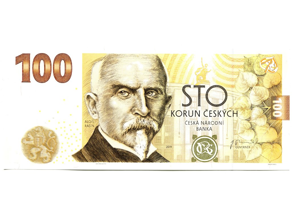 ČESKO. 100 korun 2019. Pamětní bankovka ke 100. výročí zavedení československé měny. Rašín. Série RH 02.