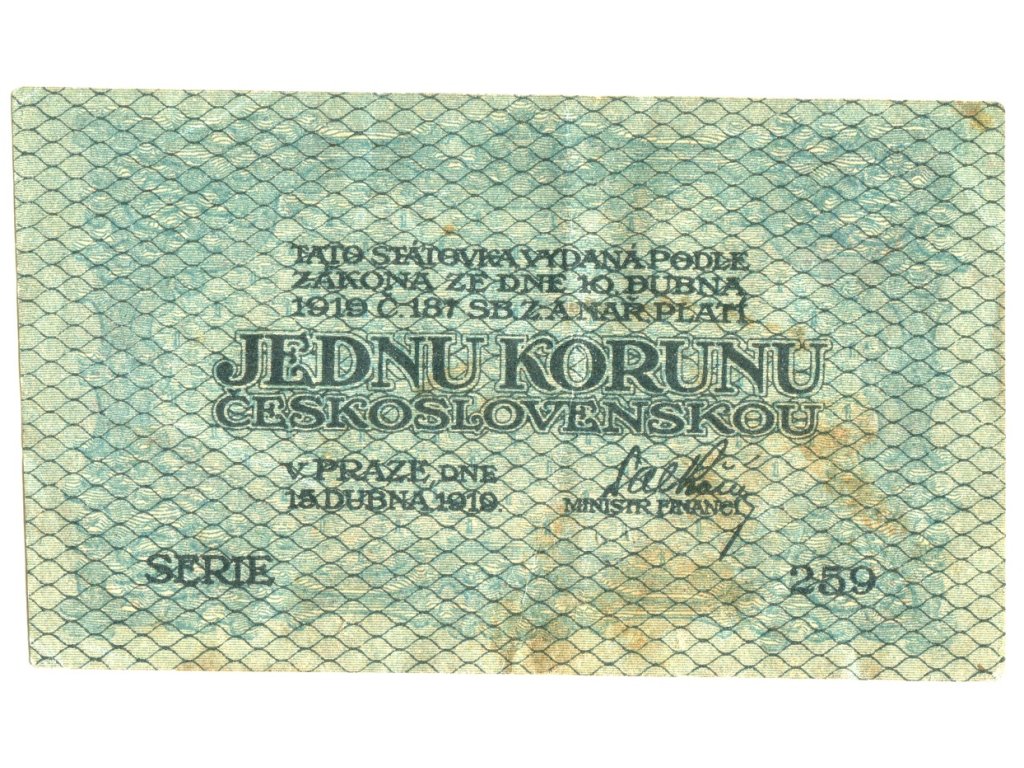 ČESKOSLOVENSKO. 1 koruna 1919. Série 259. Nov. 6.