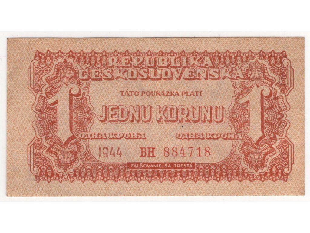 ČESKOSLOVENSKO. 1 koruna 1944. Série BH. Hej. 56a.