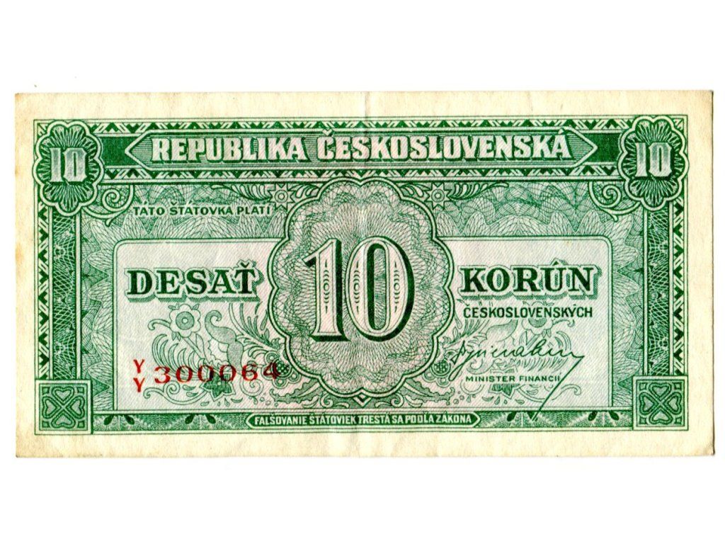 ČESKOSLOVENSKO. 10 korun (1945). Série YY. Hej. 71a1.