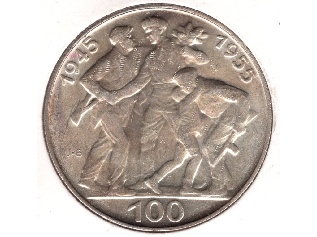ČESKOSLOVENSKO. 100 Kčs 1955. Osvobození. Varianta - b) tupé písmeno J.