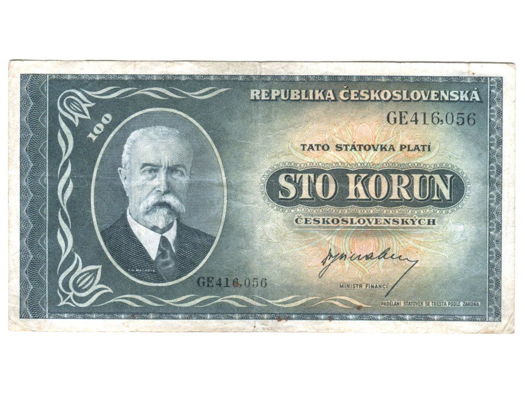 ČESKOSLOVENSKO. 100 korun (1945). Série GE. Hej. 74.