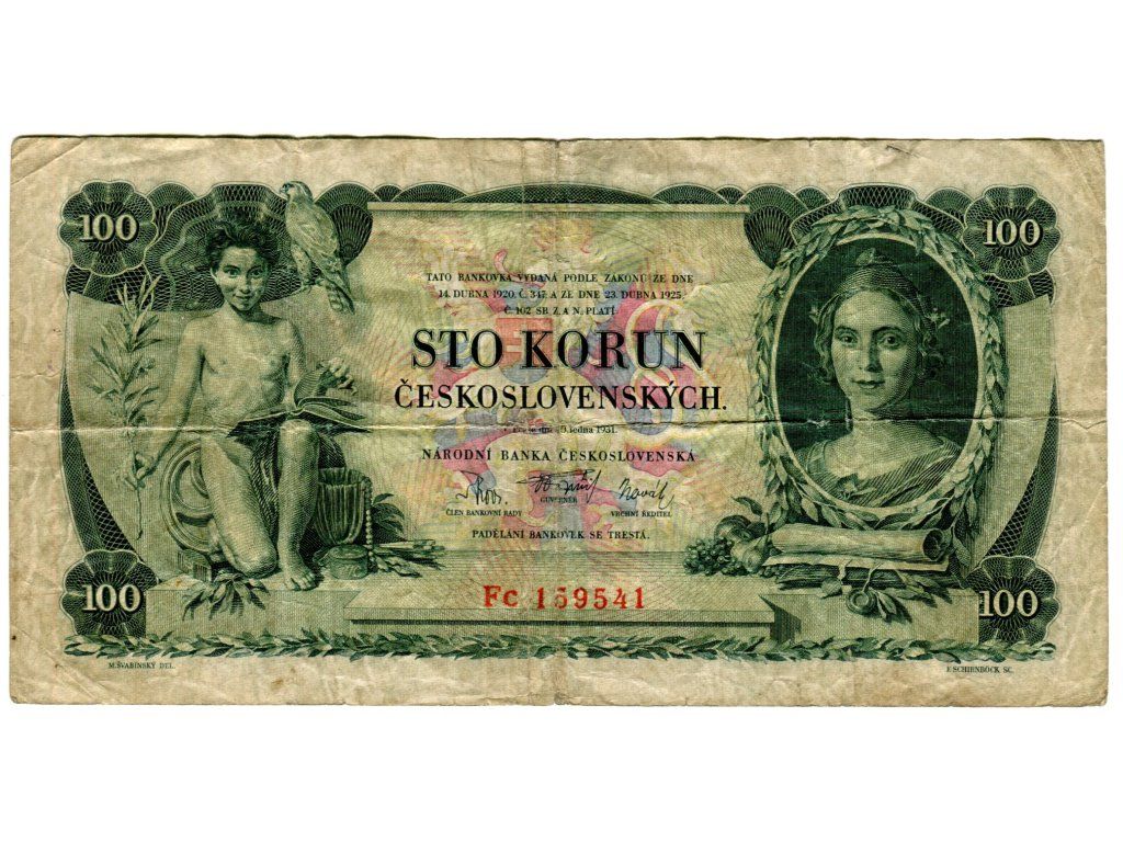 ČESKOSLOVENSKO. 100 korun 1931. Série Fc. Nov. 23c.