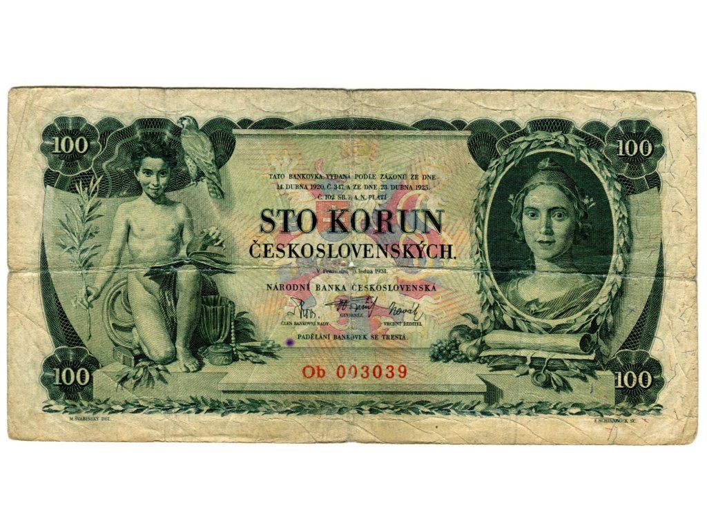 ČESKOSLOVENSKO. 100 korun 1931. Série Ob. Nov. 23b.