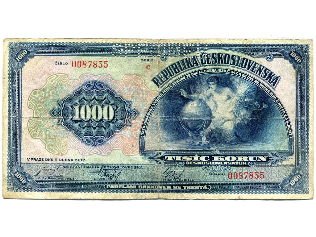 ČESKOSLOVENSKO. 1000 korun 1932. Série C. Hej. 26.