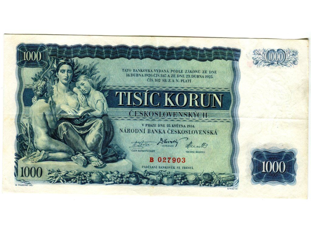 ČESKOSLOVENSKO. 1000 korun 1934. Série B. Hej. 27.