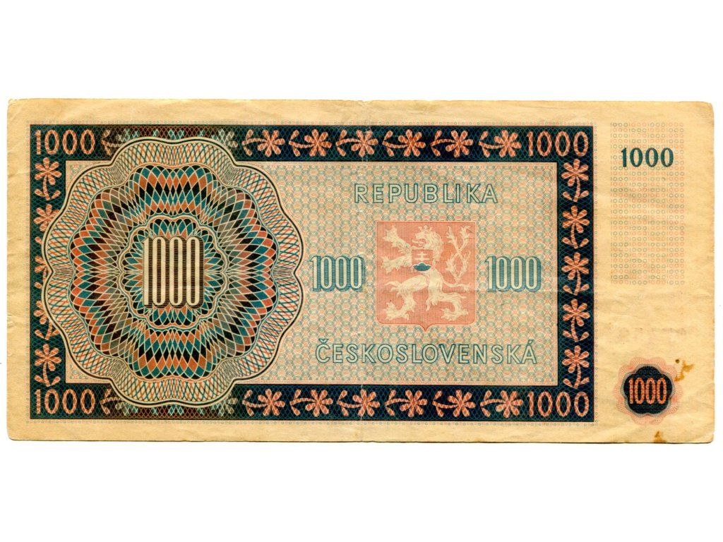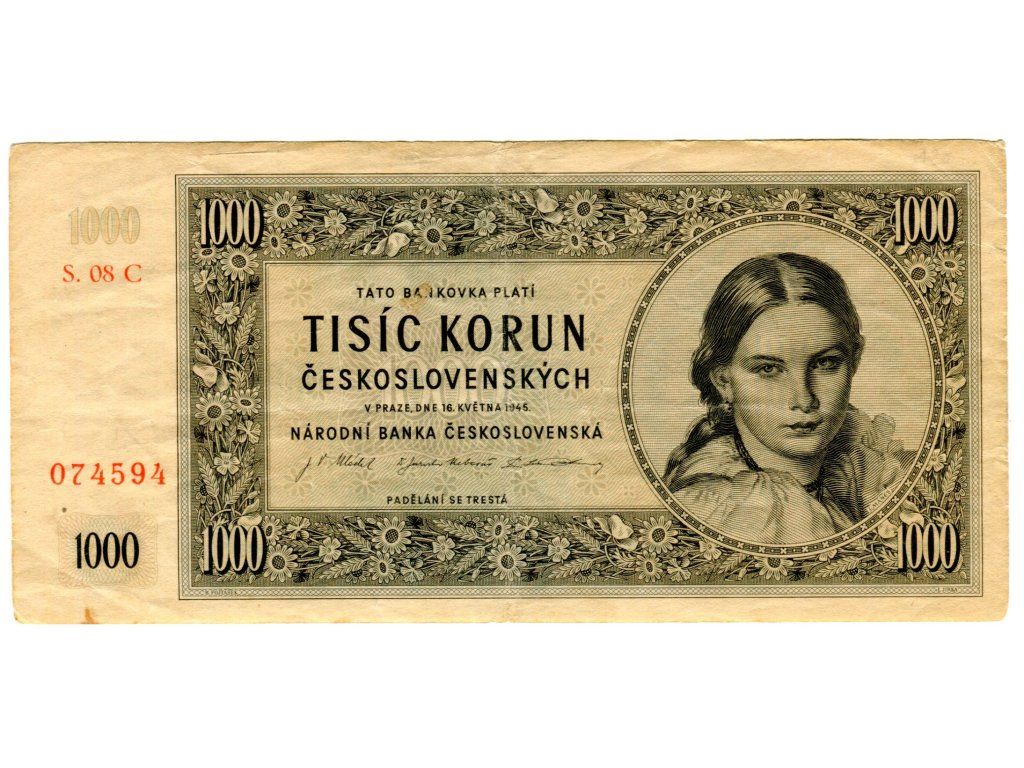 ČESKOSLOVENSKO. 1000 korun 1945. Série C 08. Hej. 79a.