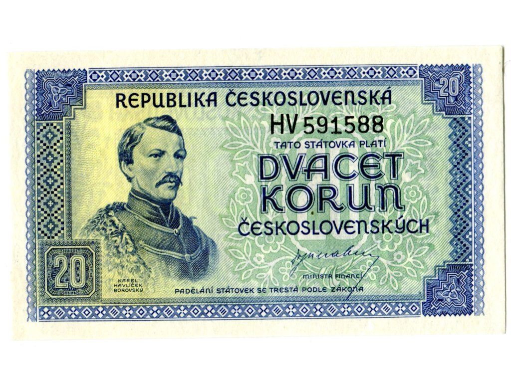 ČESKOSLOVENSKO. 20 korun (1945). Série HV. Hej. 72.