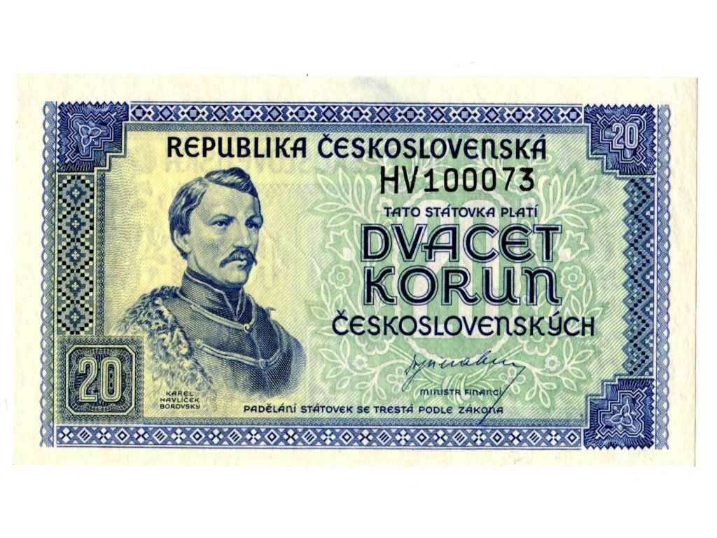 ČESKOSLOVENSKO. 20 korun (1945). Série HV. Hej. 72.