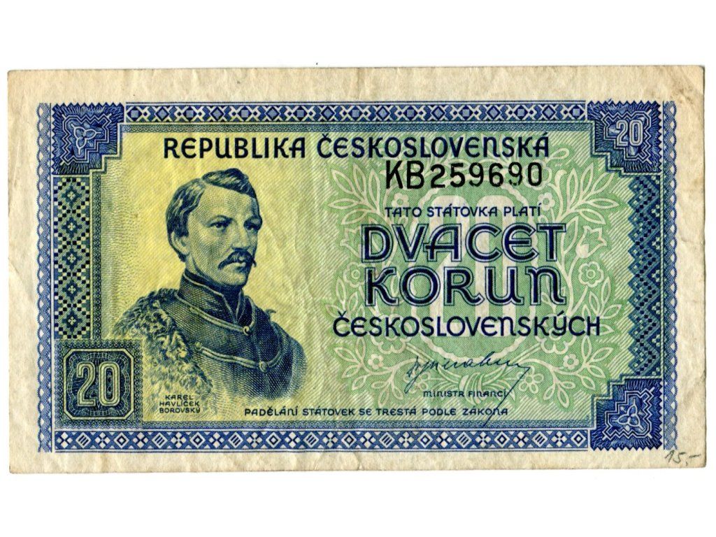 ČESKOSLOVENSKO. 20 korun (1945). Série KB. Hej. 72.