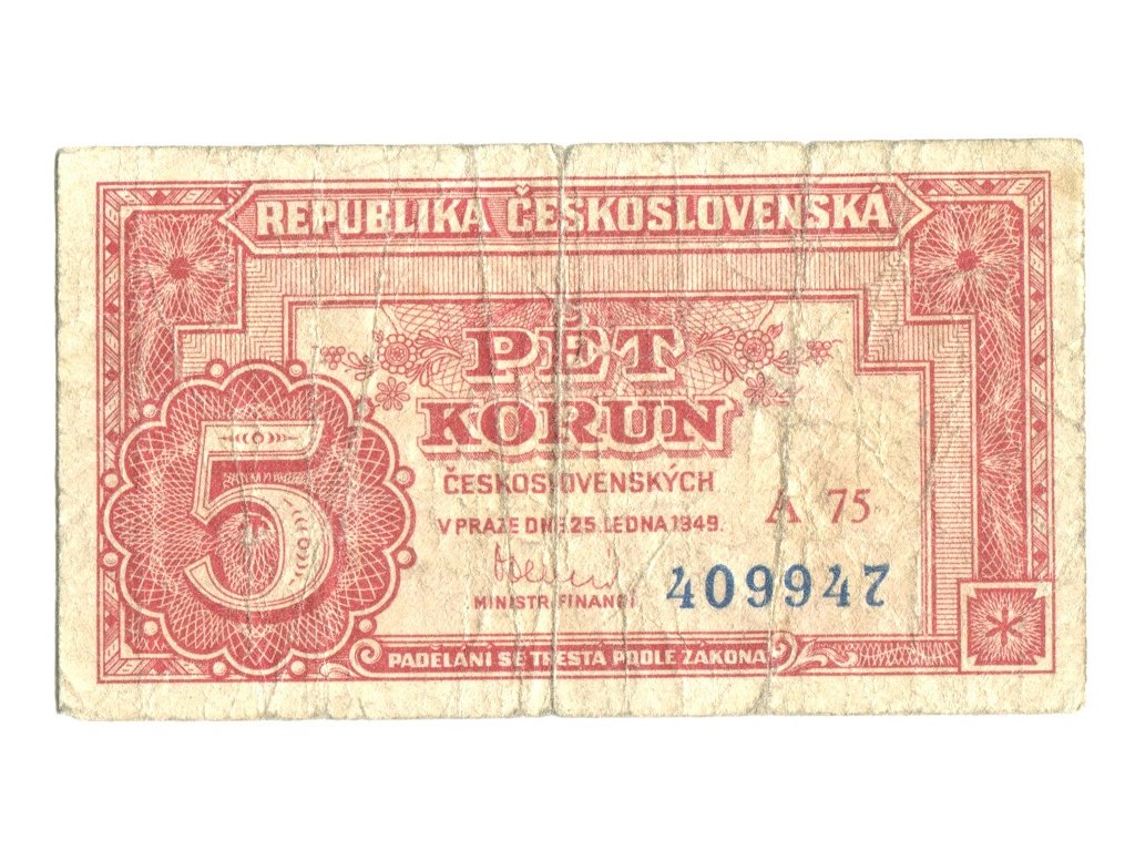 ČESKOSLOVENSKO. 5 korun 1949. Série A 75. Hej. 83a2.