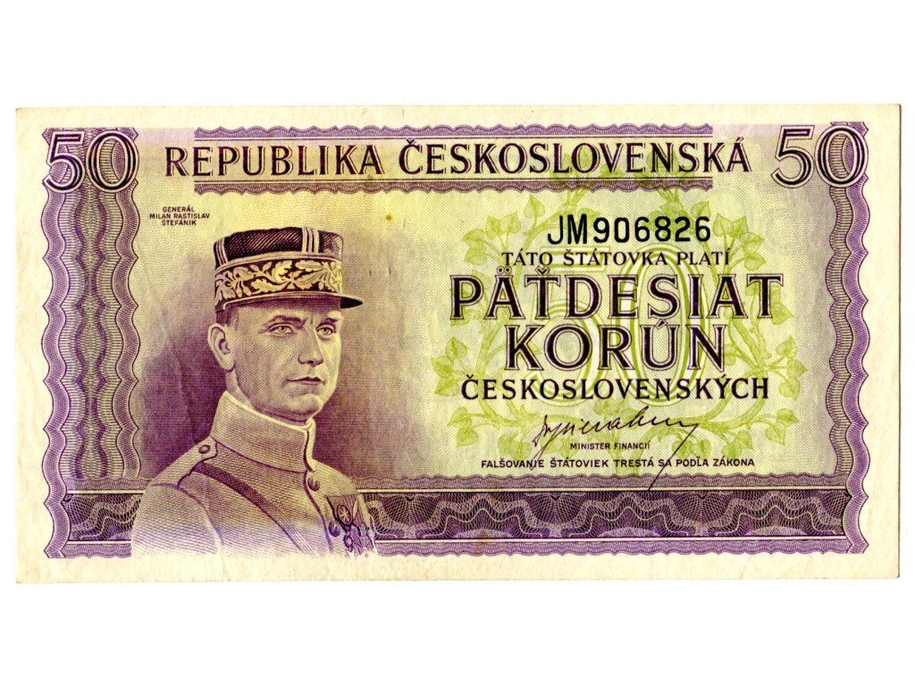 ČESKOSLOVENSKO. 50 korun (1945). Série JM. Hej. 73.