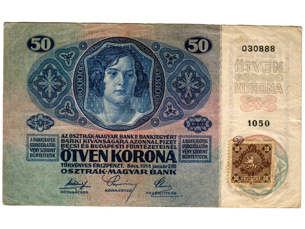 ČESKOSLOVENSKO. 50 korun 1919/1914. Kolek. Hej. 4.