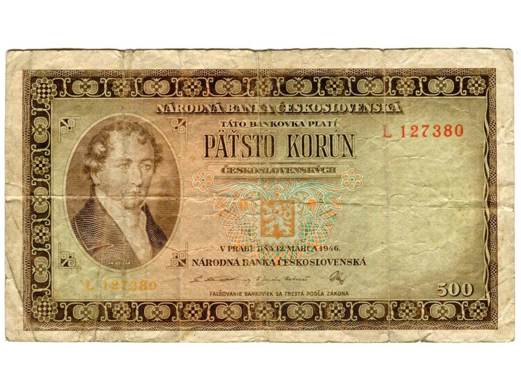 ČESKOSLOVENSKO. 500 korun 1946. Série L. Hej. 81a.