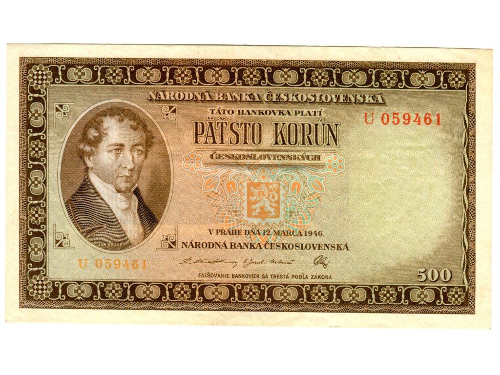 ČESKOSLOVENSKO. 500 korun 1946. Série U. Hej. 81a.