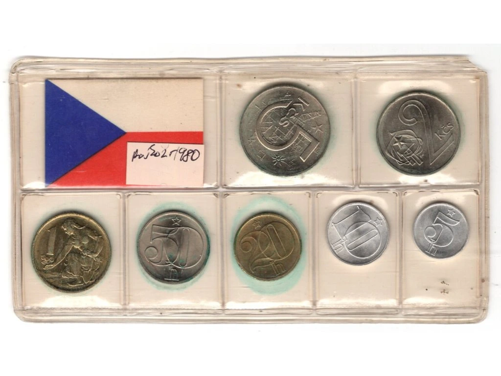 ČESKOSLOVENSKO. Sada oběžných mincí 1980. Obal PVC. Poškozené rohy.
