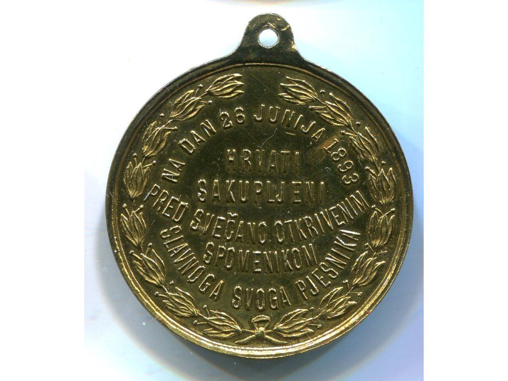 CHORVATSKO. Medaile na odhalení pomníku básníka Ivana Gundulića v Dubrovníku. 1893.