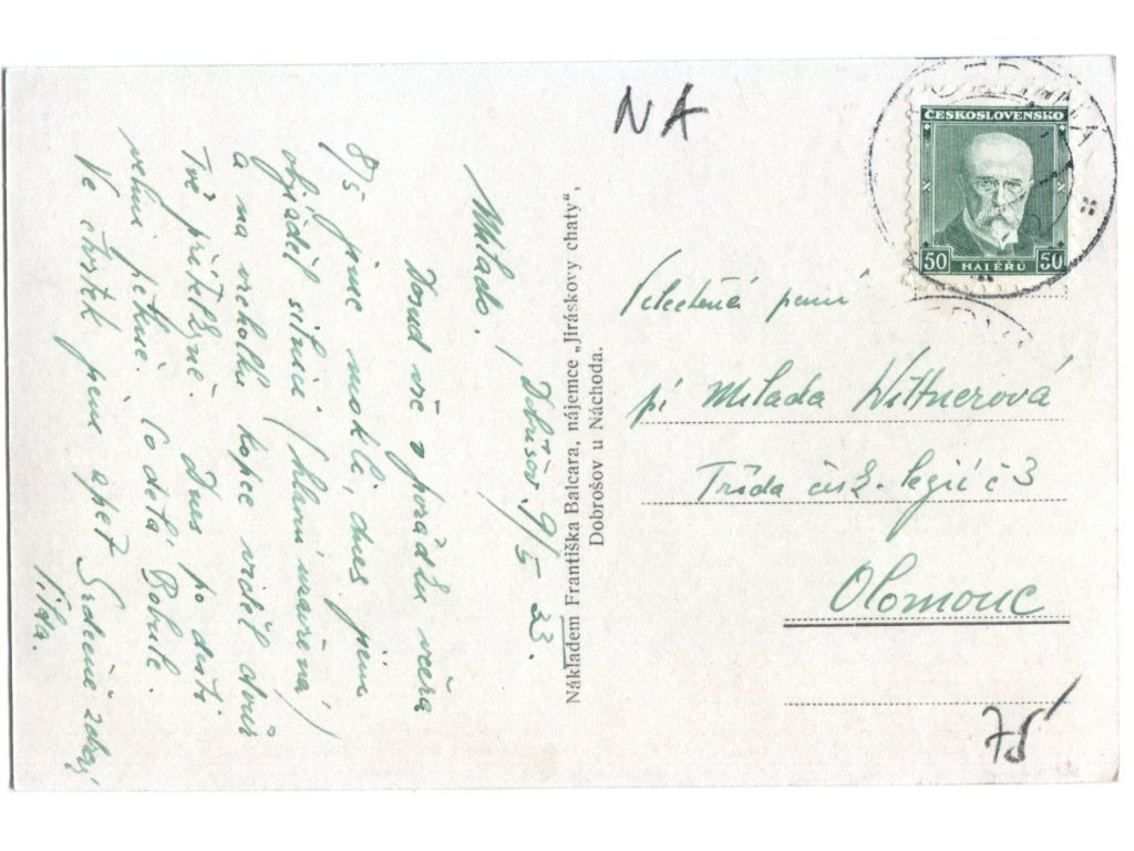 DOBROŠOV U NÁCHODA. Jiráskova chata. 1933.