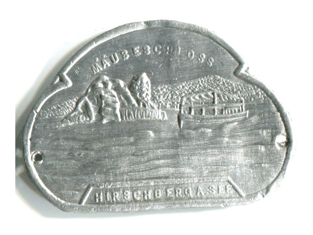 DOKSY / Hirschberg am See. Mäuseschloss. Štítek na hůl.
