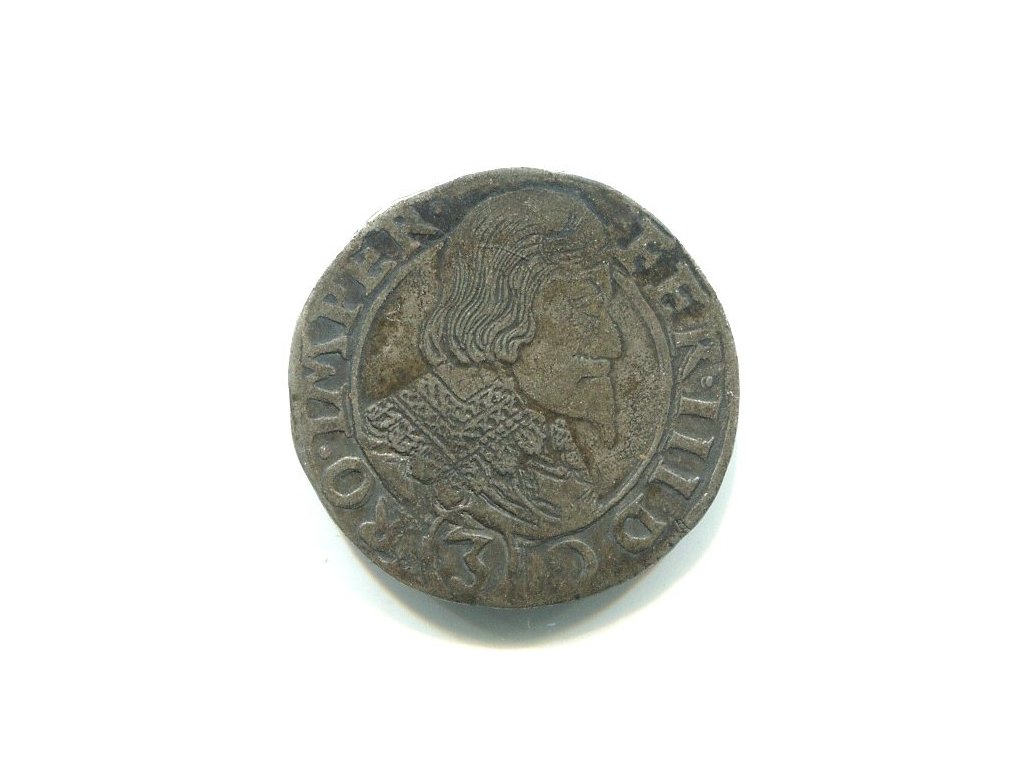 Ferdinand III. 3 Kreuzer 1638. Praha. Jakob B. Wolker.Ag.