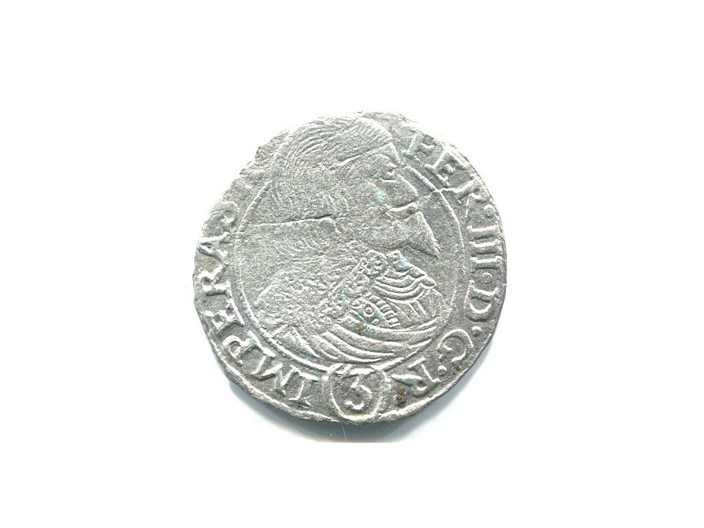 Ferdinand III. 3 Kreuzer 1640. Praha. Jakob B. Wolker.Ag.