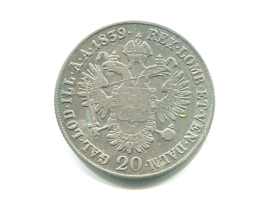 Ferdinand V. 20 Kreuzer 1839/B. Kremnica. Ag.