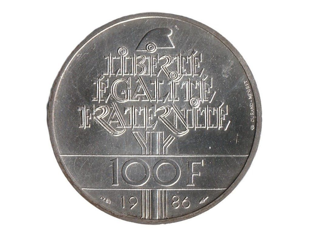 FRANCIE. 100 francs 1986. 100. výročí Sochy svobody. Ag.