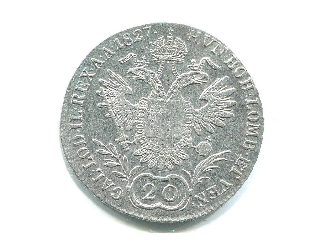František II. 20 Kreuzer 1827/C. Praha. Ag.