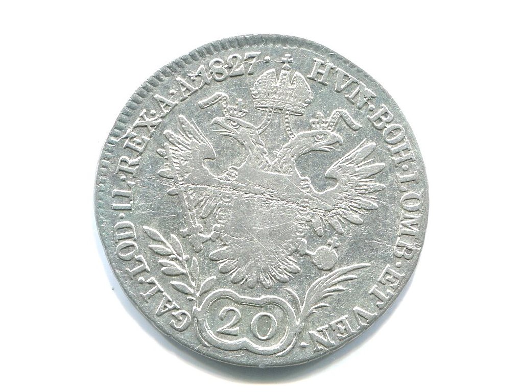 František II. 20 Kreuzer 1827/E. Gyulafehérvár / Karlovský Bělehrad. Ag.
