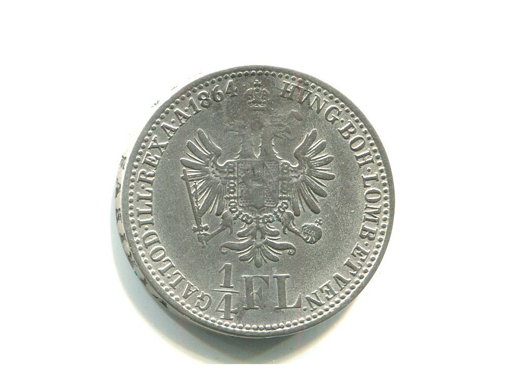 František Josef I. 1/4 zlatník 1864/A. Ag.