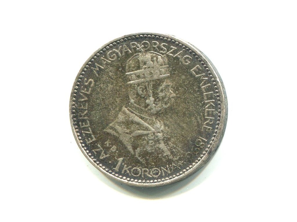 František Josef I. 1 korona 1896/KB. Tisíc let příchodu Maďarů. Ag.