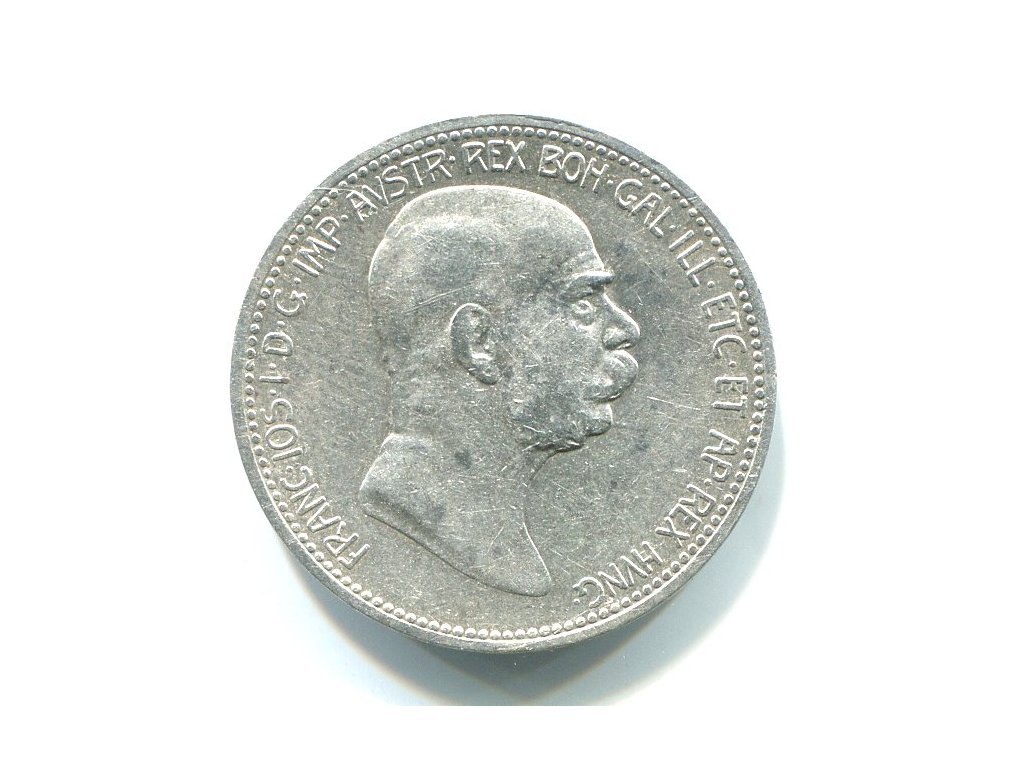 František Josef I. 1 Krone 1908. 60. výročí vlády. Ag.